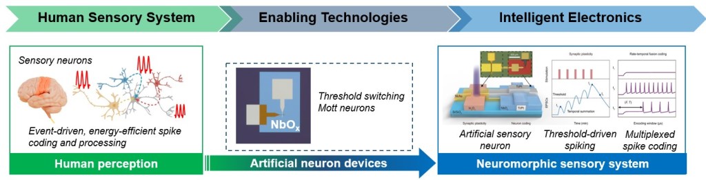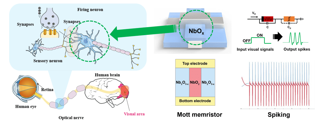 Artificial neuron and synapse devices, especially Mott memristor based spiking neurons.
